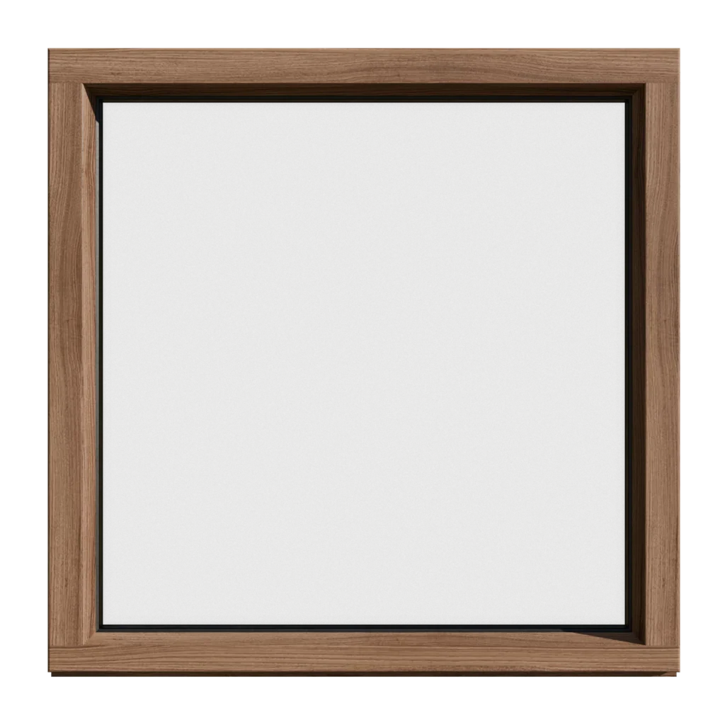 Ons best isolerende kozijn: vast glas in geplatoniseerd Fraké, volledig luchtdicht en onderhoudsarm.